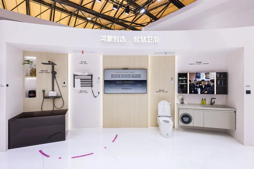 智慧卫浴体验区可以体验到丰富的鸿蒙智选产品联动,智能花洒支持智能预排冷水,还有集成了毫米波雷达的浴霸,实现精准“风追人吹”,让用户沐浴时更暖更舒适。